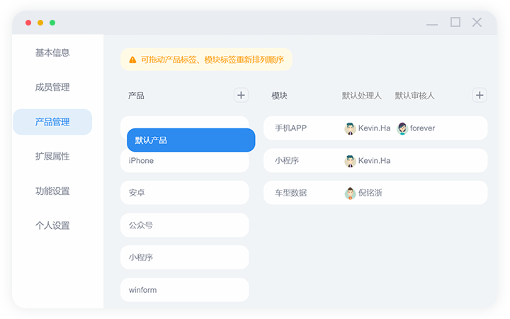 可设置模块默认处理人,提交bug时自动匹配默认处理人
